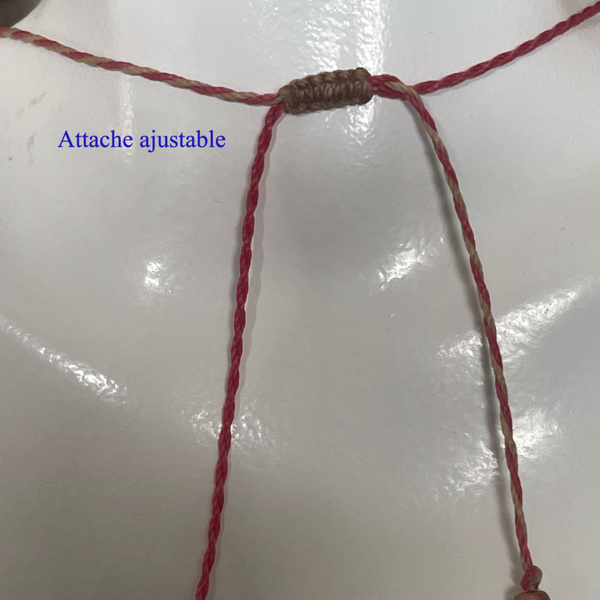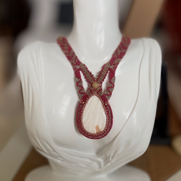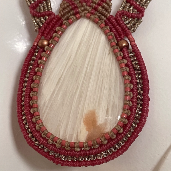 Collier tissé en fil linhasita polyester 0,75mm en rose et crème avec une pierre de scolècite sertie.