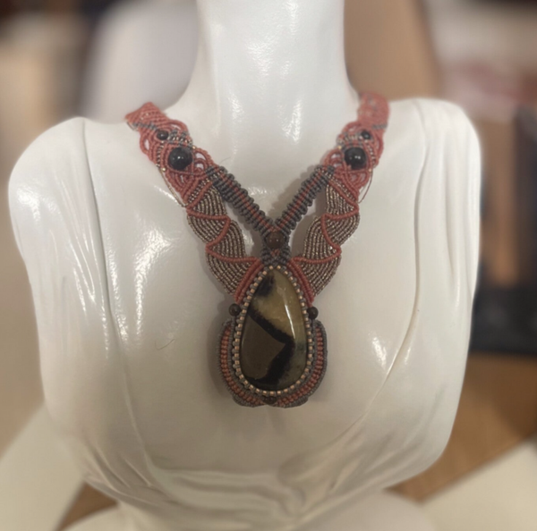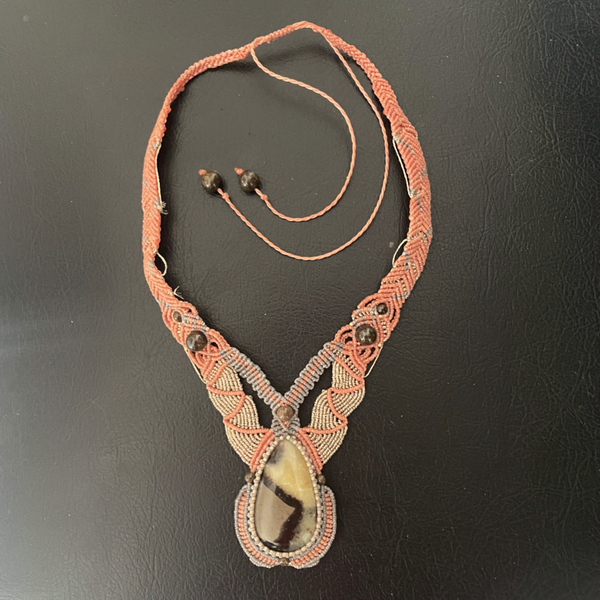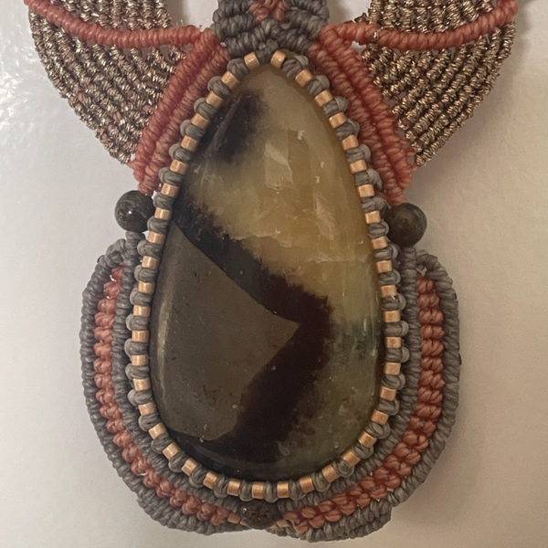 Collier en tissage Macramé avec un cabochon Septaria jaune