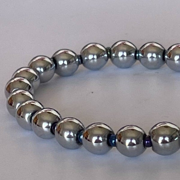 Conception de jolis bracelets élastiques en pierre d'hématite séparé par une perle en verre.