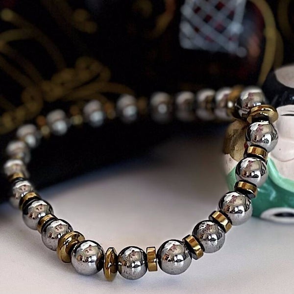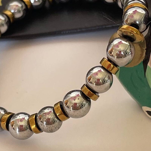 Bracelets élastiques pierre naturelle Hématite Argent et doré