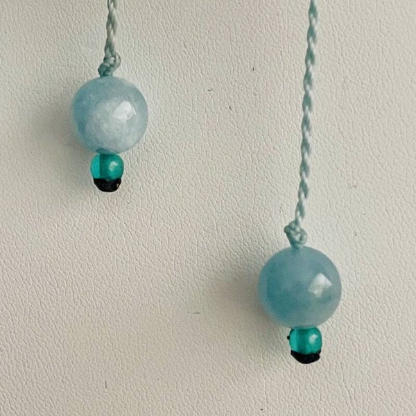 Jolie Aigue-Marine sertie délicatement dans le fil macramé 0,35 avec son cordon assorti. La fermeture est réglable grâce à un système de noeud coulant. Cordon avec 2 perles d'aigue-Marine