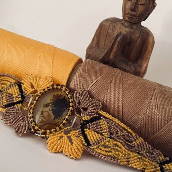 Bracelet tissage en Macramé AGATE SCENIC DENTRITIQUE